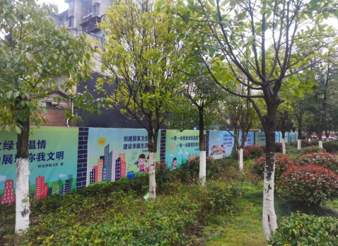 同時在湖天北路東側、天星東路北側等區域的閑置土地上,城投公司工作人員都已進行了垃圾清理及公益廣告安裝、密目網鋪設等美化措施。