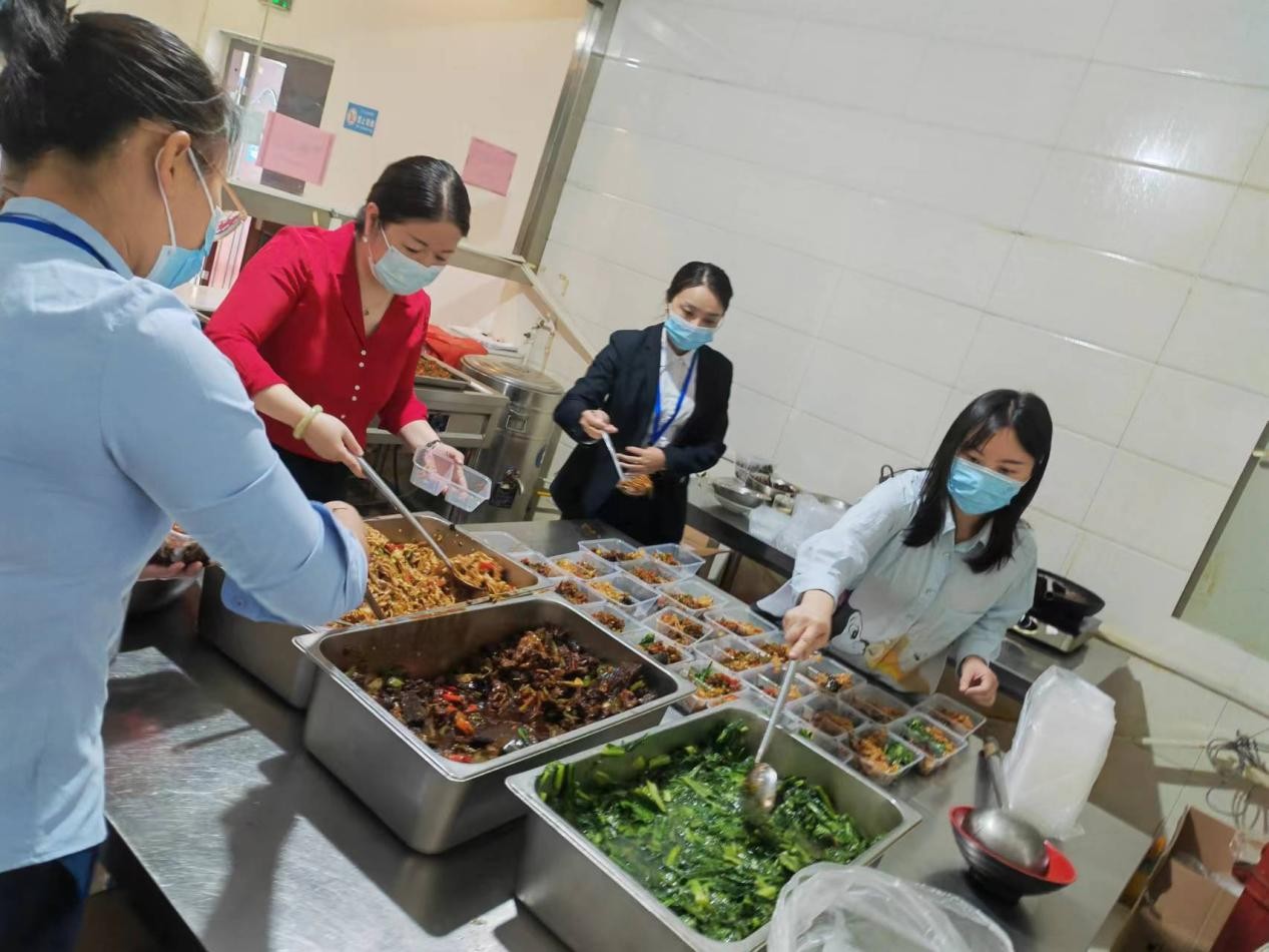 面對疫情變化,公司食堂工作人員出行受限,眼看國資系統抗疫人員,市城建投公司、市交建投公司包保社區志愿者、醫務人員和駐守大本營的守護者用餐無法保證時,市城建投公司領導率先垂范,帶領“大本營”守護者們走進食堂,紛紛化身洗菜工、切菜員、廚師、打菜員……自己動手,煮飯炒菜,打包送餐。“剛開始挺怕,壓力也大,頭一回用大型的廚房設備,挑戰兩三百人的用餐,心里在打鼓,怕操作不當,耽誤大家就餐,怕味道不好等,還是大家的鼓勵和齊心協力,讓我們圓滿完成任務?!焙笄诒U辖M工作人員笑道,“掌勺不易,還好最后大家都挺滿意”。