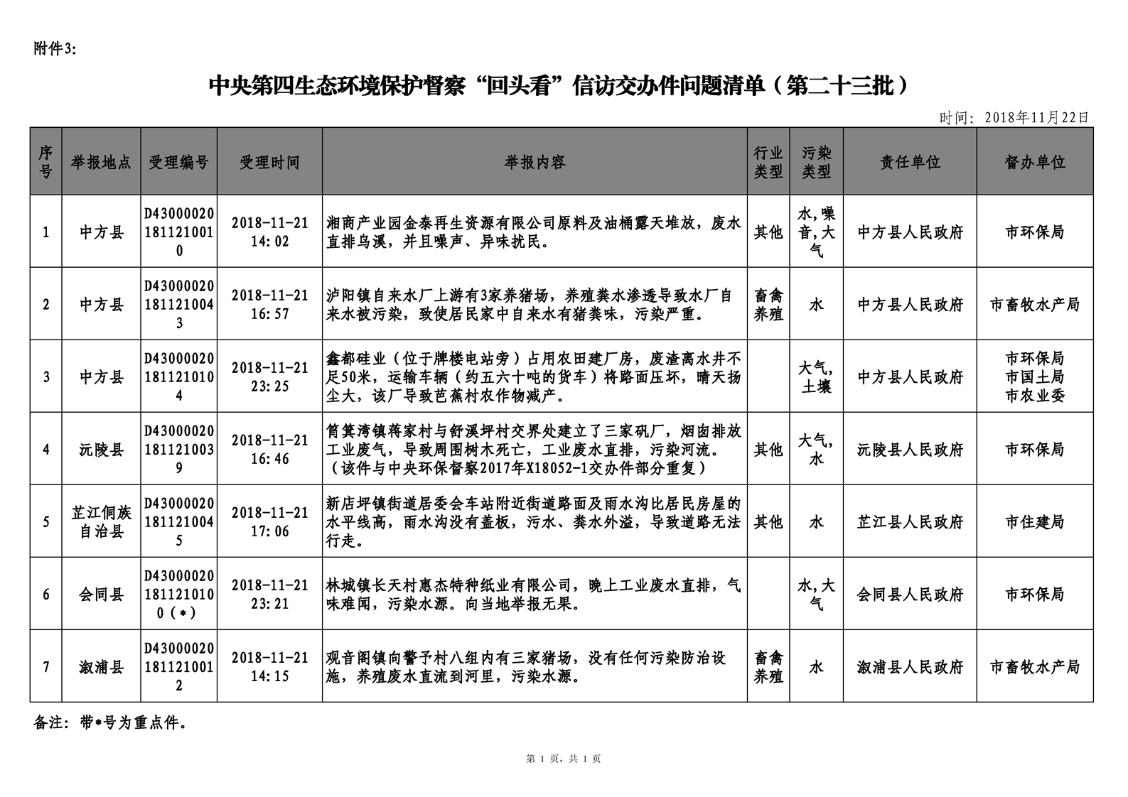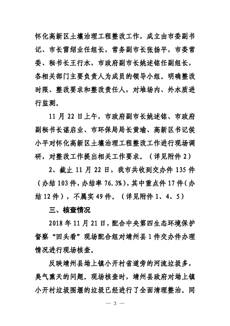 第二十三期 懷化市配合中央生態環境督察回頭看工作專報