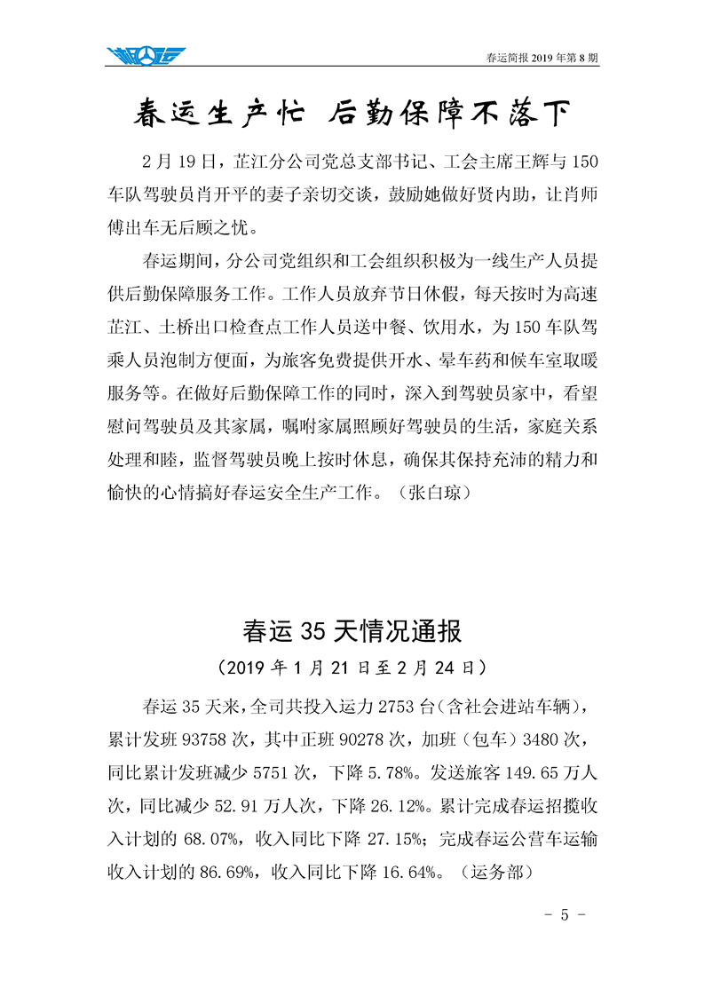 2019年湖南懷化公路運輸集團有限責任公司春運簡報(第八期)