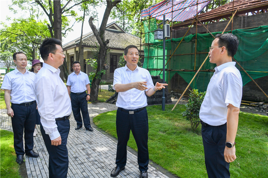 (6月13日,市委書記許忠建在洪江市、洪江區調研省旅發大會重點項目建設。圖為許忠建在洪江市安江農耕文化旅游區了解黔陽專署舊址項目提質改造情況。)