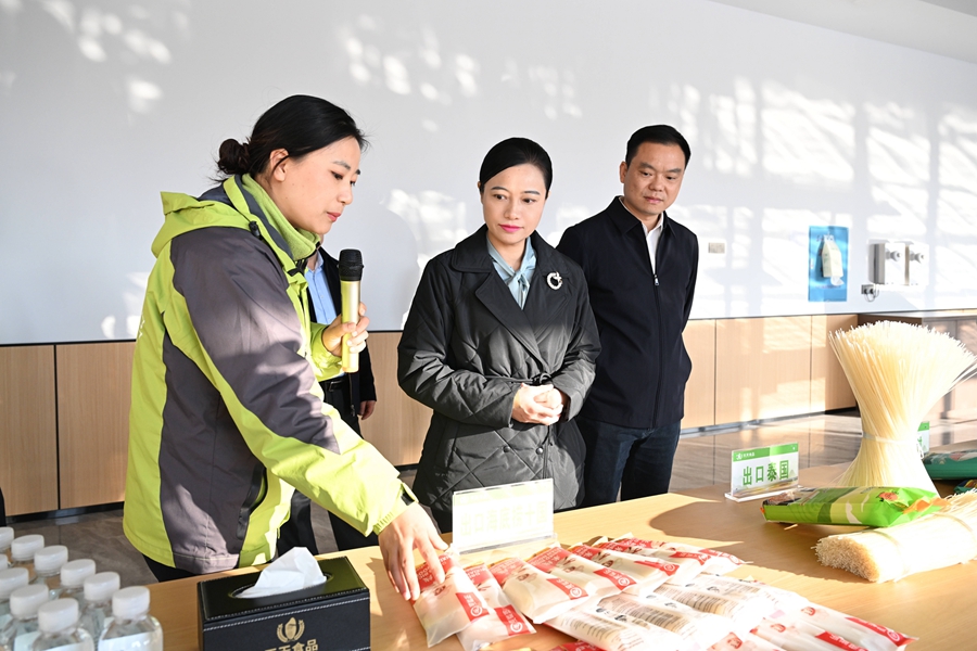 (12月5日下午,市委副書(shū)記、代市長(zhǎng)韋朝暉在中方縣調(diào)研。圖為韋朝暉在懷化天天食品科技有限公司詳細(xì)了解農(nóng)副產(chǎn)品精深加工與東盟市場(chǎng)拓展等情況。懷化日?qǐng)?bào)全媒體記者 吳濤 攝)
