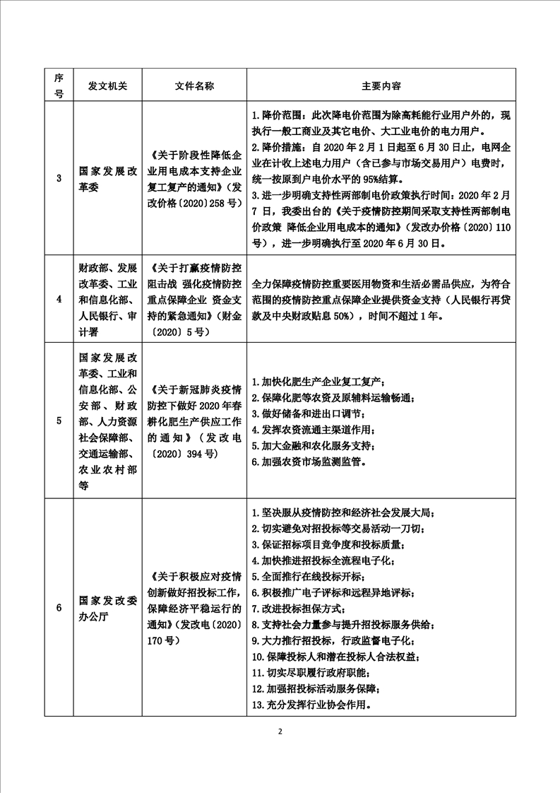 新冠肺炎疫情防控期間復工復產支持政策摘編(第1期)