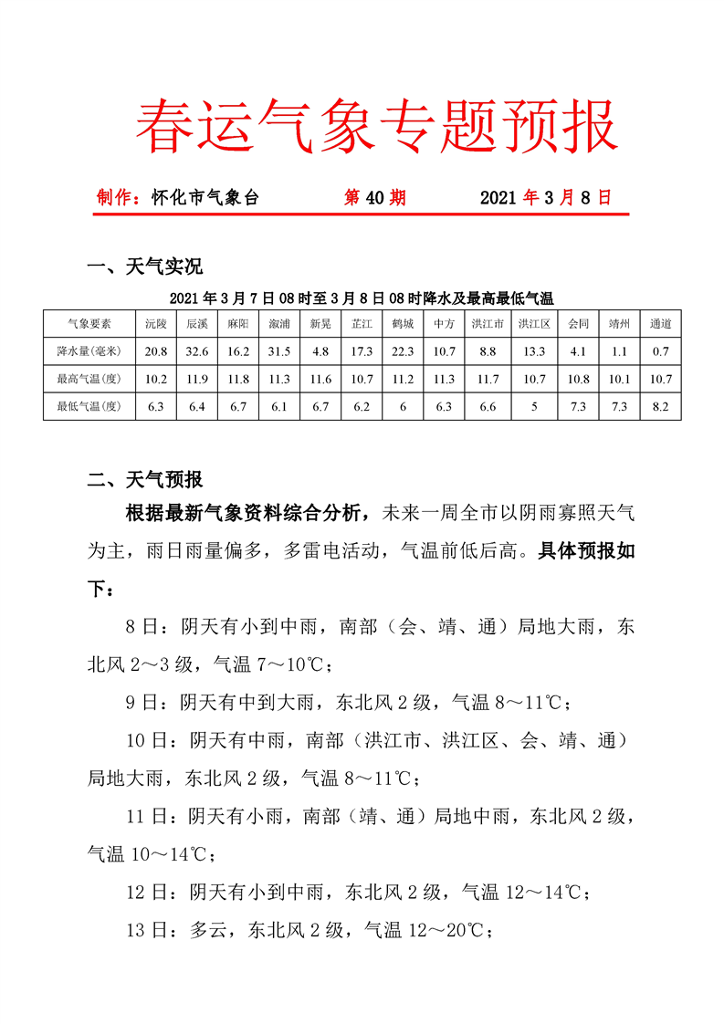 春運期間氣象專題第40期