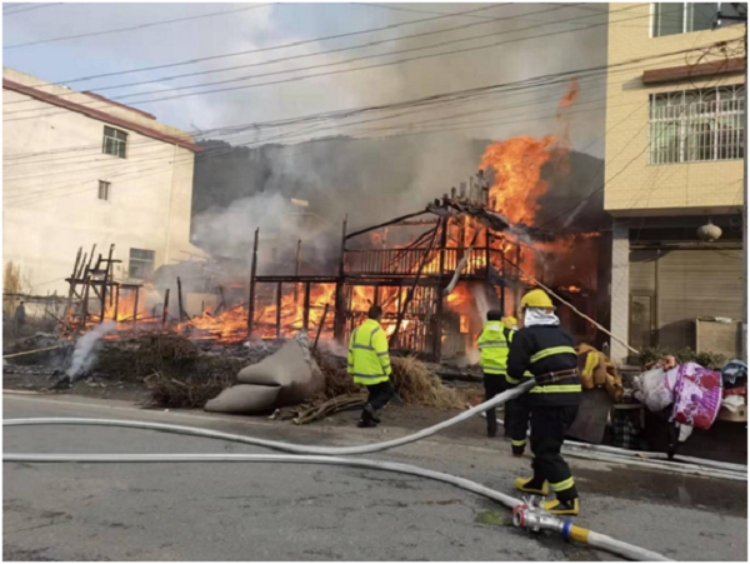 雪峰山管理所馳援洪江市塘灣鎮水源村失火現場。