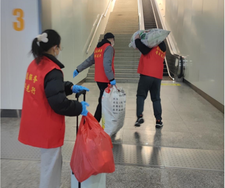 青年志愿者經過培訓,穿上馬甲,奔赴服務崗位。青年志愿者們合理分工,有的在進站口提醒旅客提前準備好身份證,有的在安檢口協助行李過檢,有的在咨詢臺熱心答疑,對于老弱病殘等特殊群體,志愿者們還會進行送站服務。青年志愿者們不畏嚴寒,堅守崗位,積極熱情地開展春運服務工作,紅色的身影不停穿梭在旅客中間,以自身的行動溫暖旅客的回家路!